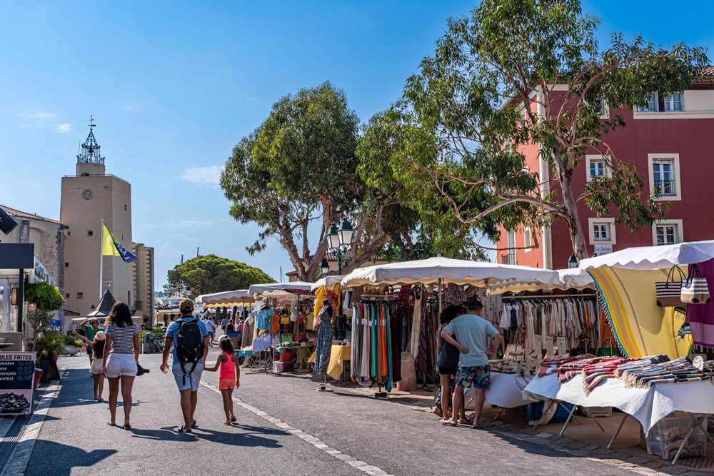 À Port Grimaud, le marché estival prend des airs de carte postale. Chaque jeudi et dimanche matin, d’avril à octobre, les étals colorés investissent les places et les ruelles de la Petite Venise Provençale, entre deux canaux et les façades pastel. Ici, les producteurs et artisans sont accompagnés par une brise marine où se mêlent art de vivre, flâneries et décor unique.