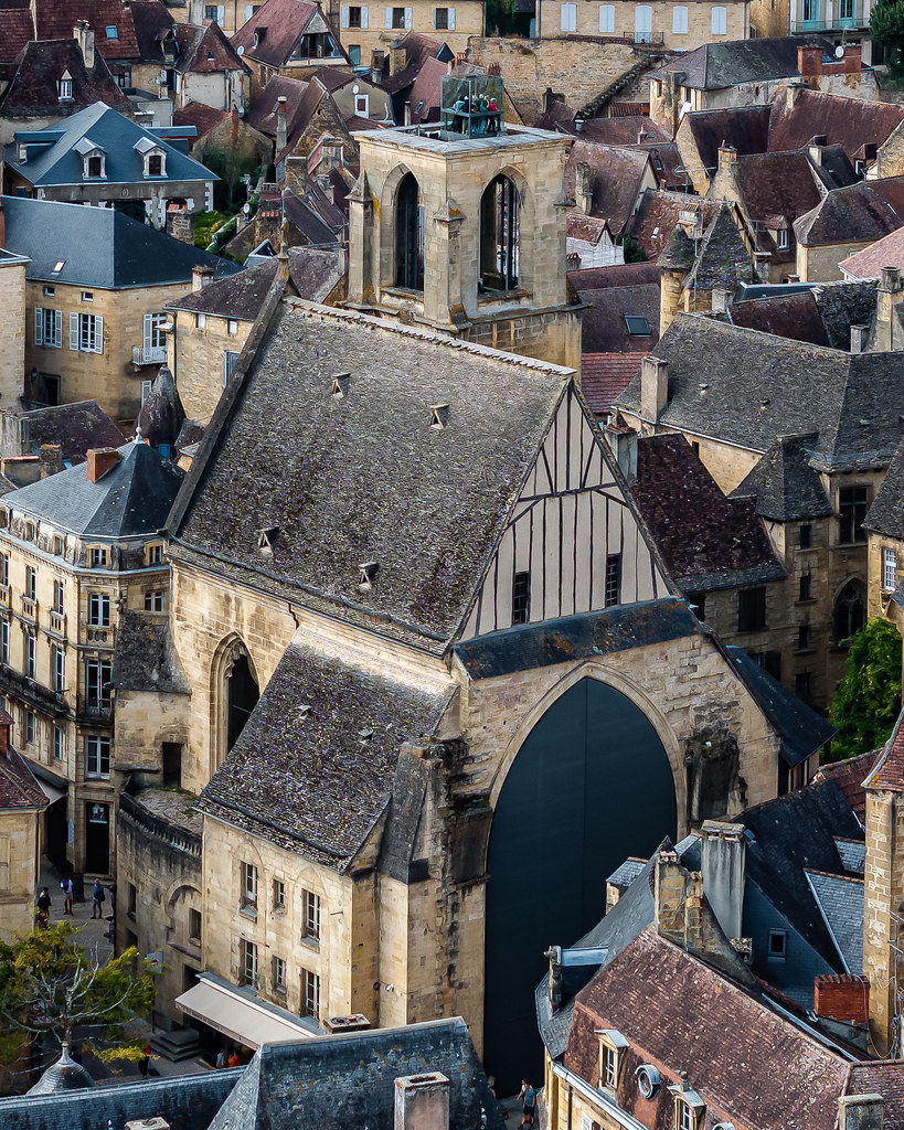Sarlat, la cité médiévale, resplendit sous les reflets dorés de ses toits de lauze. Depuis les airs, on perçoit la densité de son centre ancien, la rigueur de son tracé et les vallées verdoyantes qui l’entourent.