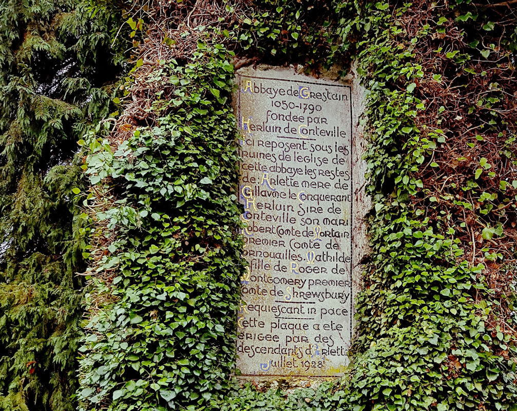 Herluin de Conteville fut le second mari d’Arlette, la mère de Guillaume le Conquérant. Une nuit il rêva que la Sainte Vierge lui demandait de fonder une abbaye près d’une source en un lieu nommé Grestain. C’est ainsi qu’en l’an 1050, Herluin fonda Notre Dame de Grestain. Arlette et lui y sont d’ailleurs inhumés.